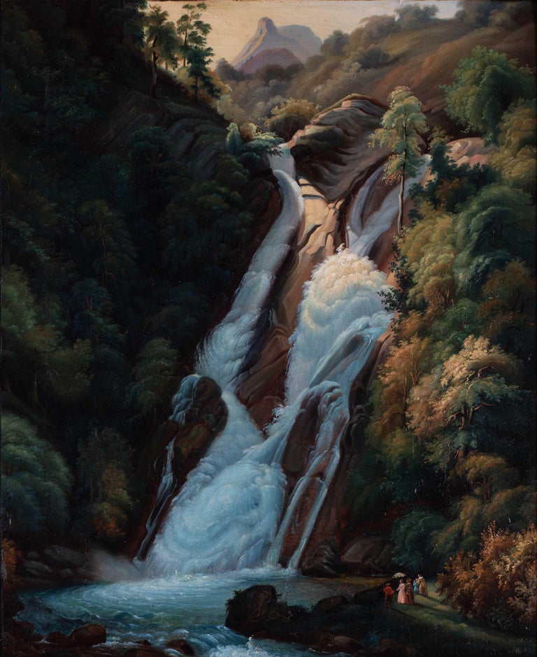 Unknown 19th C German Painting Of Figures At A Waterfall In The Manner Of Friedrich For Sale At 1stdibs Love Island Anton Nude Oil Paintings Of Waterfalls Alan De La